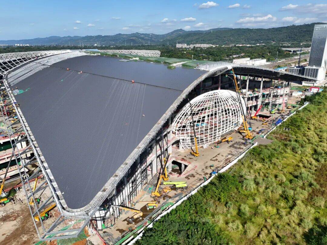 冲刺!重点项目国庆“加速跑”。天府站建设者昼夜奋战推进金属屋面与幕墙施工、四川名人馆装饰装修进入最后冲刺、成都科创生态岛整岛建设超七成、天府永兴实验室园区全面转入装饰阶段……