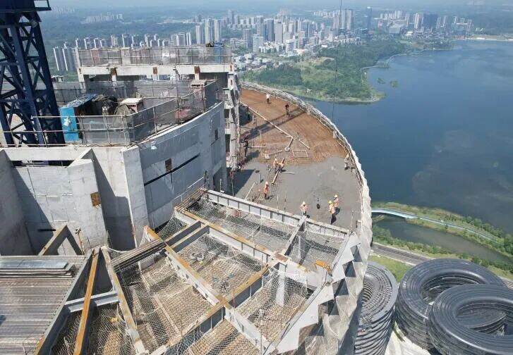 在兴隆湖畔,成都科创生态岛施工现场设备林立,引擎轰鸣,千余名建设者正全力推进项目建设。目前,整岛已实现全面封顶,主体结构施工已全部完成,外立面幕墙工程进度过半,精装修作业同步展开,整体完成比例已达总工程量的72%以上,各项建设工作正高效有序推进。