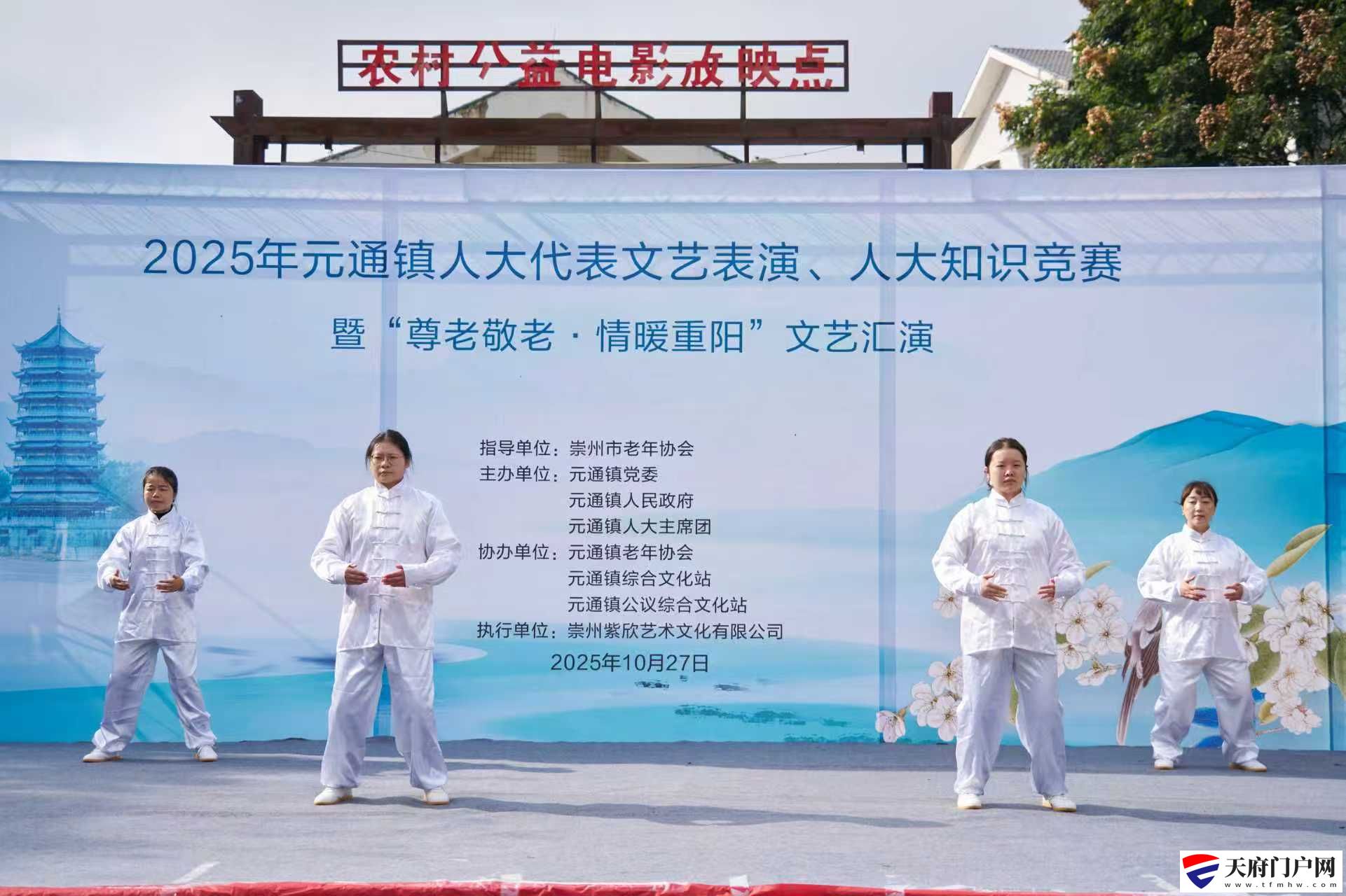 文艺竞演,情暖重阳——文艺汇演与知识竞赛在天秀花园广场联动上演。调研会议结束后,系列活动的重头戏——2025年元通镇人大代表文艺表演、人大知识竞赛暨“尊老敬老·情暖重阳”文艺汇演在天秀花园广场隆重举行。汇演在热烈祥和的气氛中拉开帷幕,由人大代表、各村(社区)老年朋友及镇文化站选送的16个节目依次登场,形式多样,精彩纷呈,充分展现了代表的履职风采与老年人老有所乐的精神面貌。活动还巧妙融入了“以赛促学”的人大知识竞赛环节,围绕人民代表大会制度、法律法规及代表履职知识展开紧张活泼的竞答,不仅提升了代表的理论素养,也向现场群众有效普及了人大知识,营造了尊法、学法、用法的良好氛围。