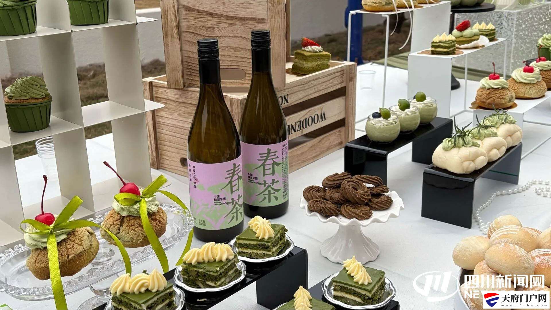 用抹茶制作的甜点与米酒